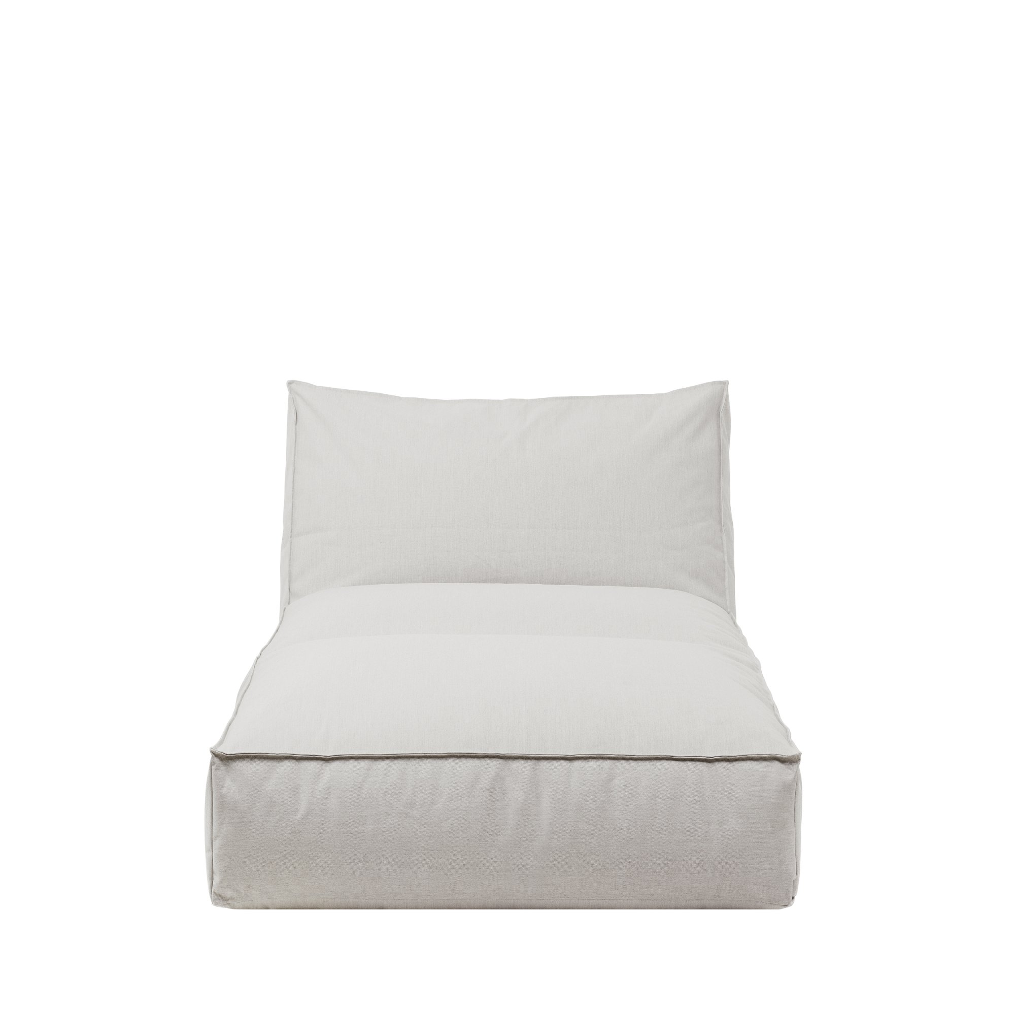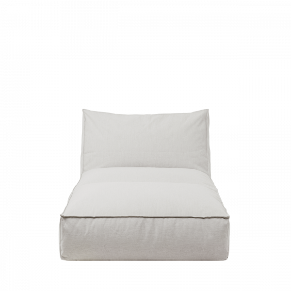 The STAY bed tempts you to stay and enjoy the warm season outside in a relaxed way. The outdoor lounger made of water-repellent material in light grey promises the ultimate relaxing feeling. The high-quality, weatherproof textile is also easy to clean and UV-resistant. The cushion filling made of environmentally neutral EPS beads makes the lounger stable in volume and shape. And so comfortable that you won't even want to get up. Due to the lightweight materials, the bed can be moved comfortably on the terrace or in the garden. The bed is available in different sizes, fabrics and colours. A matching seat pouf to extend the lying surface and cosy cushions complete the stylish outdoor furniture range. Includes metal bracket to adjust the angle of the back section.
