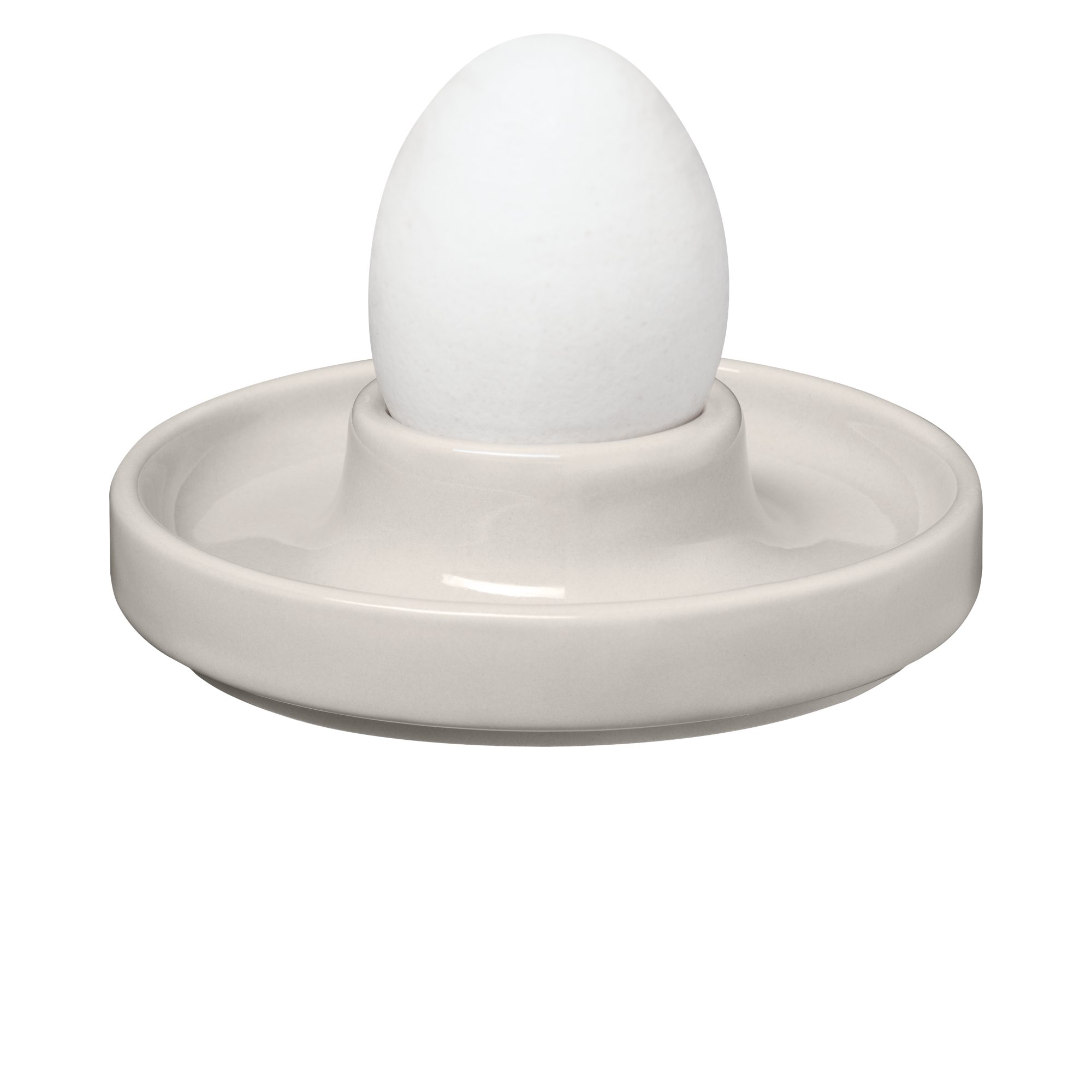 Ceramic egg cup with a white egg, perfect for serving soft-boiled eggs.