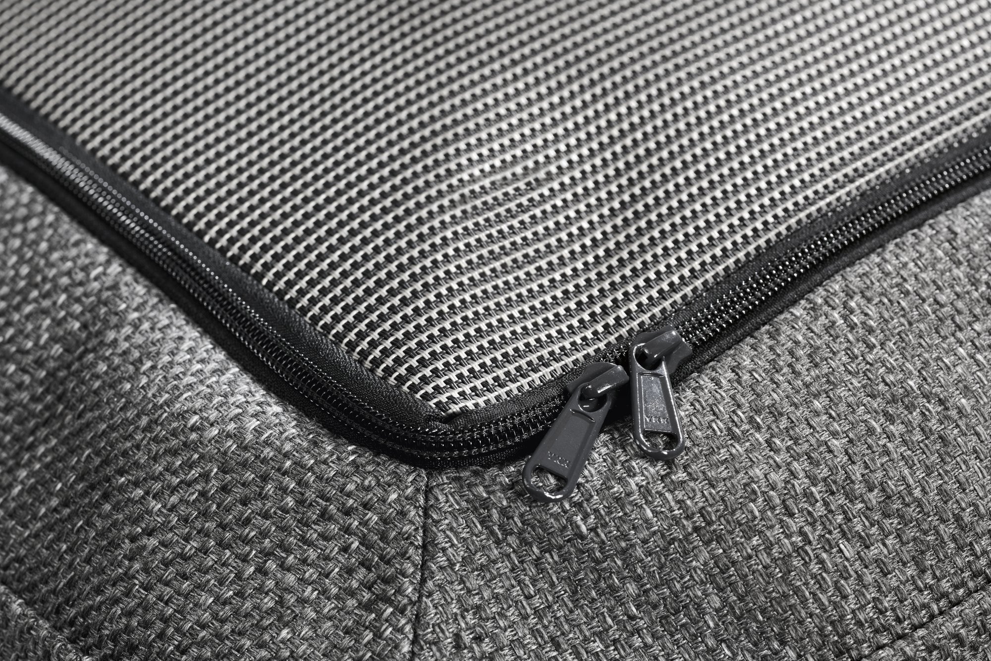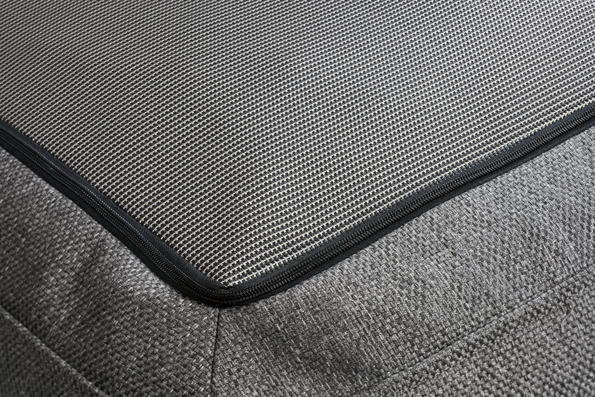 Obwohl für den Außenbereich konzipiert, hat die Grow-Serie einige der gleichen Qualitäten wie klassische Indoor-Möbel. Die Weichheit der Stoffe um einen Weichschaumkern sowie die bauschigen, leicht geschwungenen Formen sorgen dafür, dass die Möbel beim Entspannen im Freien gemütlich und einladend wirken. Der Stoff ist selbstverständlich wasserabweisend und die Designer haben sich für zwei elegante Farbwelten entschieden, sodass Sie eine harmonische monochrome Variante oder eine etwas mutige Zweifarb-Kombination kreieren können.