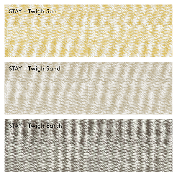 Twigh ist ein Stoff aus recyceltem Polyester und hat ein zeitloses Hahnentritt-Muster. Er zeichnet sich durch eine hohe Lichtbeständigkeit aus und ist zusätzlich Oeko-Tex zertifiziert.