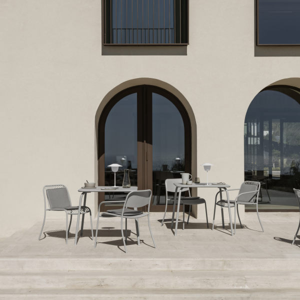 Das Hauptthema, dass das Ende der flachen Flächen leicht um die Rohre der Hauptstreben gezogen ist, zieht sich durch die Designs der Stühle und Tische und schafft somit den formalen Zusammenhang der Yua-Familie. kaschkasch hat die Yua-Serie entworfen, bei der Sie aus einer Vielzahl von Kombinationen wählen können: Ein klassischer Stuhl mit und ohne Armlehnen und ein breiterer und entspannterer Lounger, beide in Flachstahl - YUA - und mit filigranen Metallsträben - YUA WIRE - erhältlich. Außerdem gibt es ein Loungesofa in Yua Wire-Version. Sie können diese Sitzmöbel perfekt mit einem großen Esstisch, kleinen Bistrotischen in runder und rechteckiger Form sowie niedrigen Loungetischen in runder und rechteckiger Form kombinieren. Alle diese Varianten sind in einem hellen Silk Gray und einem dunkleren Granite Gray erhältlich.