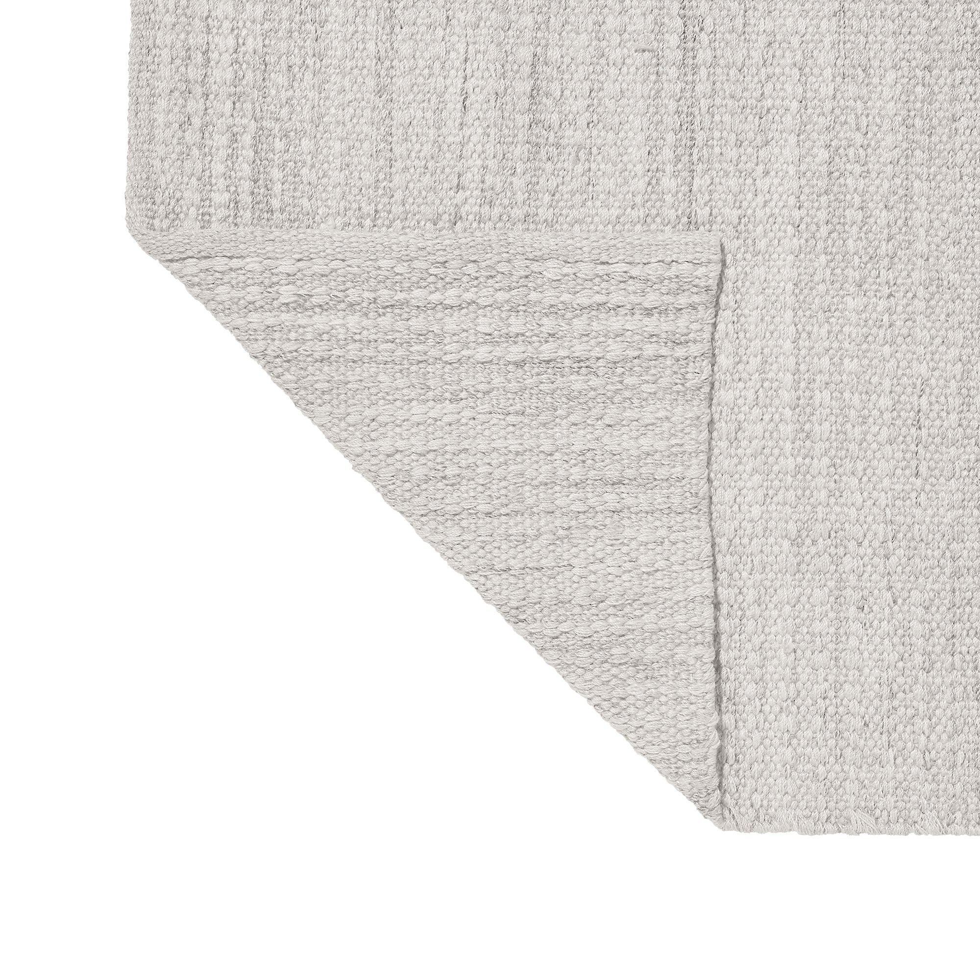 Weicher grauer gewebter Teppich mit Texturdetails und einem sauberen Rand.