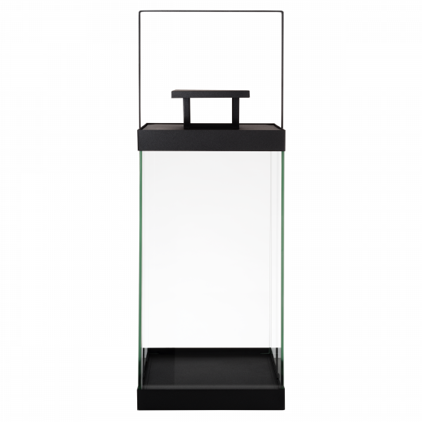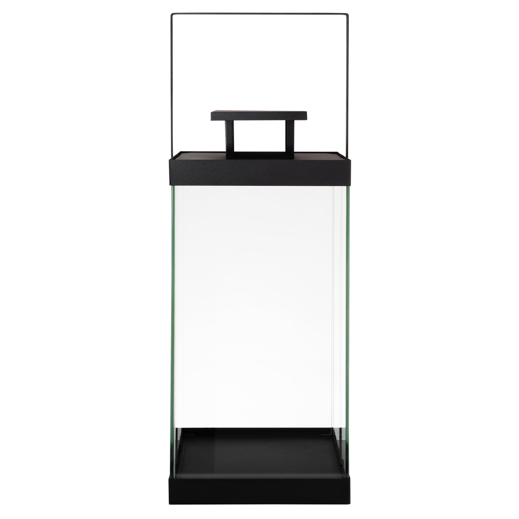 Stylische schwarze und Glaslaterne mit minimalistischer Gestaltung für moderne Dekoration.