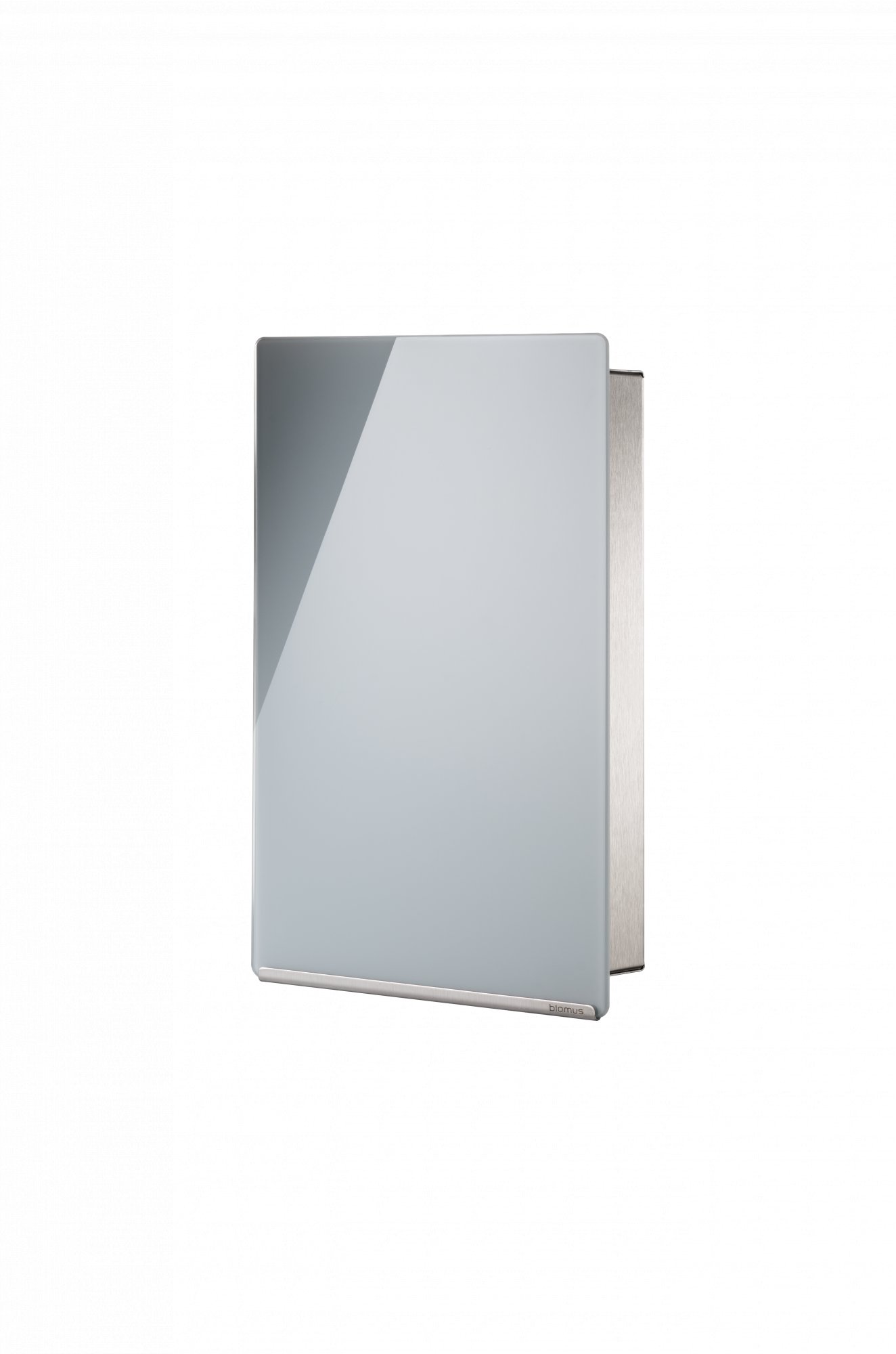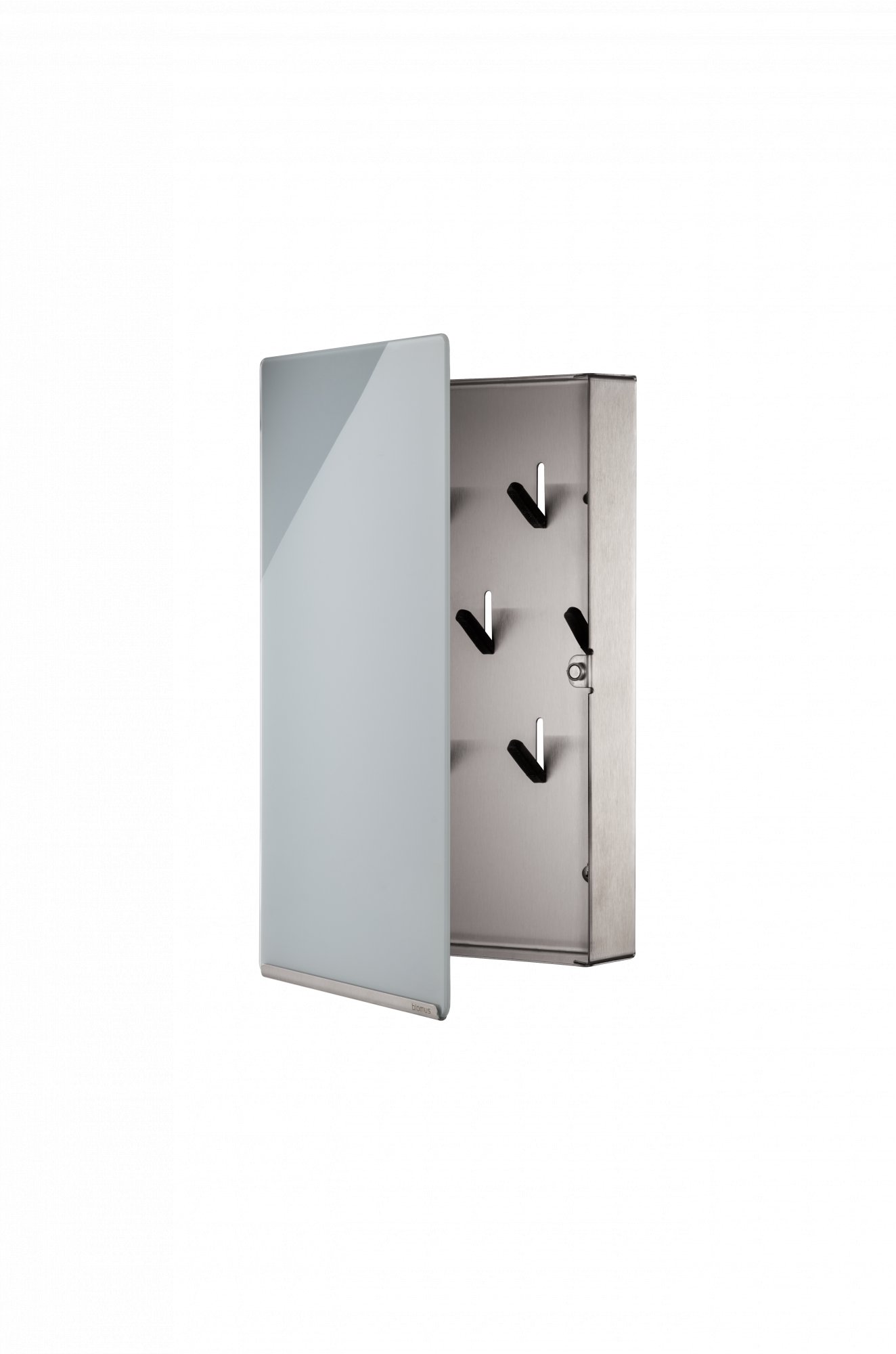 Die Glastür wird komfortabel mit einem innen angebrachten Magneten verschlossen. Eine kleine, mattierte Edelstahlplatte mit blomus Logo ist auf der Front angebracht. Diese ist nicht nur ein schönes Detail, sondern zeigt Ihnen auch, an welcher Seite der Schlüsselkasten zu öffnen ist.