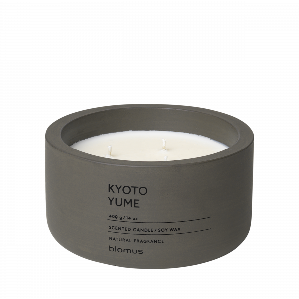 Duftende Sojawachskerze namens Kyoto Yume in einem stilvollen grauen Behälter, 400 g.