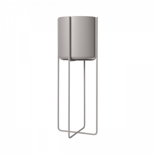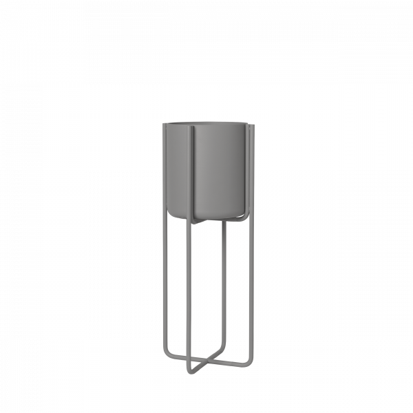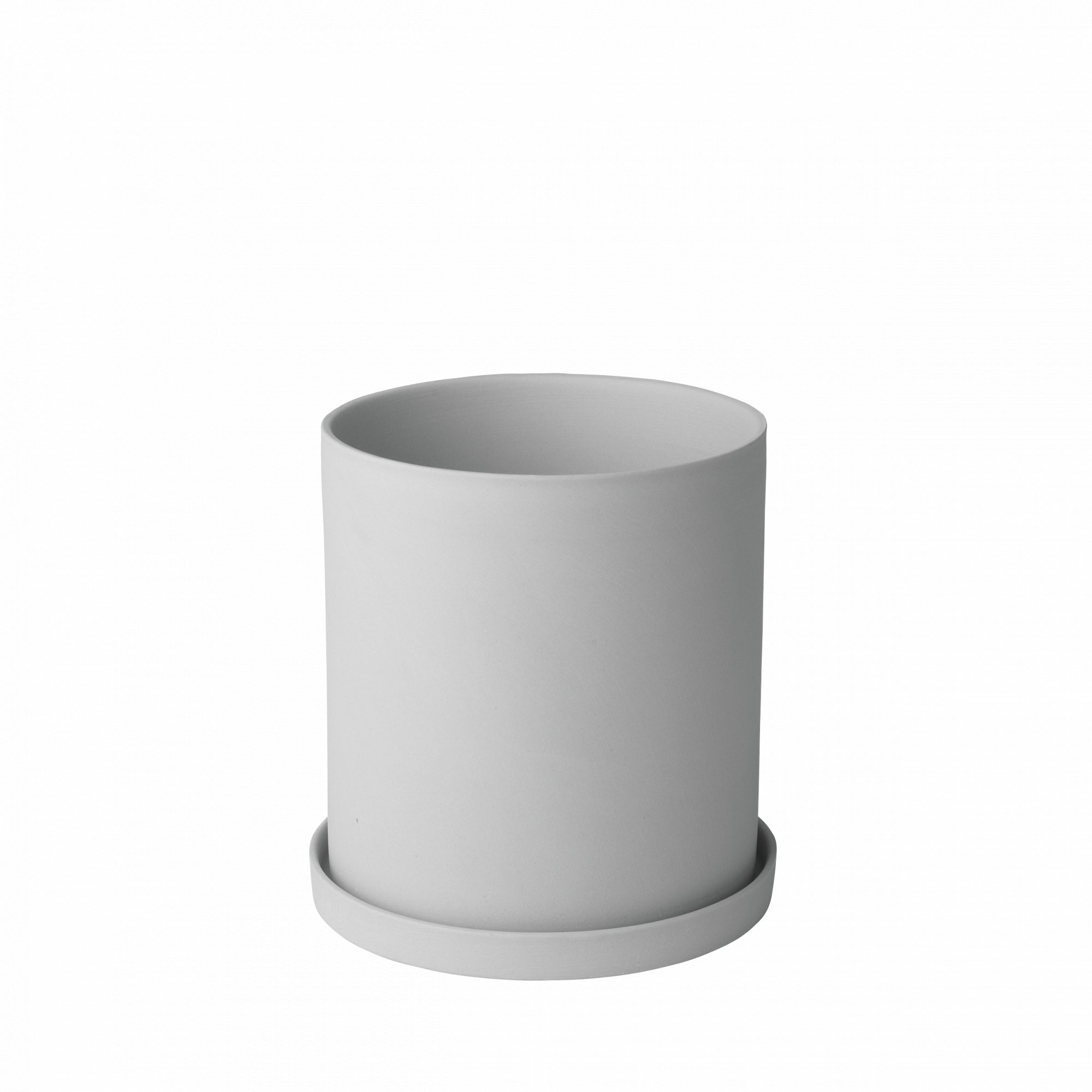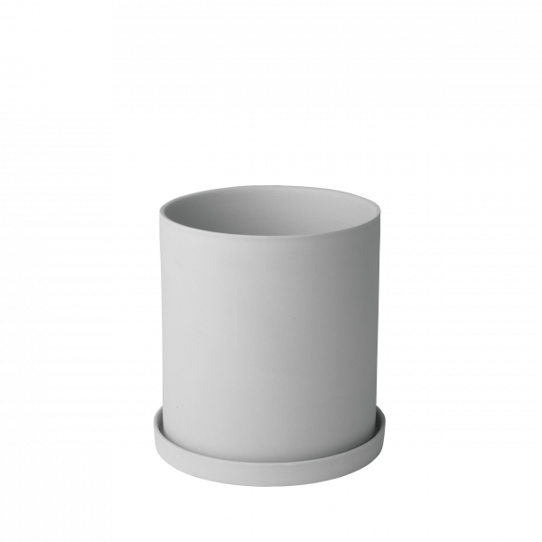Minimalist grauer Blumentopf mit passender Untertasse für die Innenraumbegrünung.