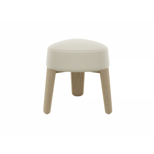 Hocker -KUON- Stoff Boucla Farbe Beige, oak nature