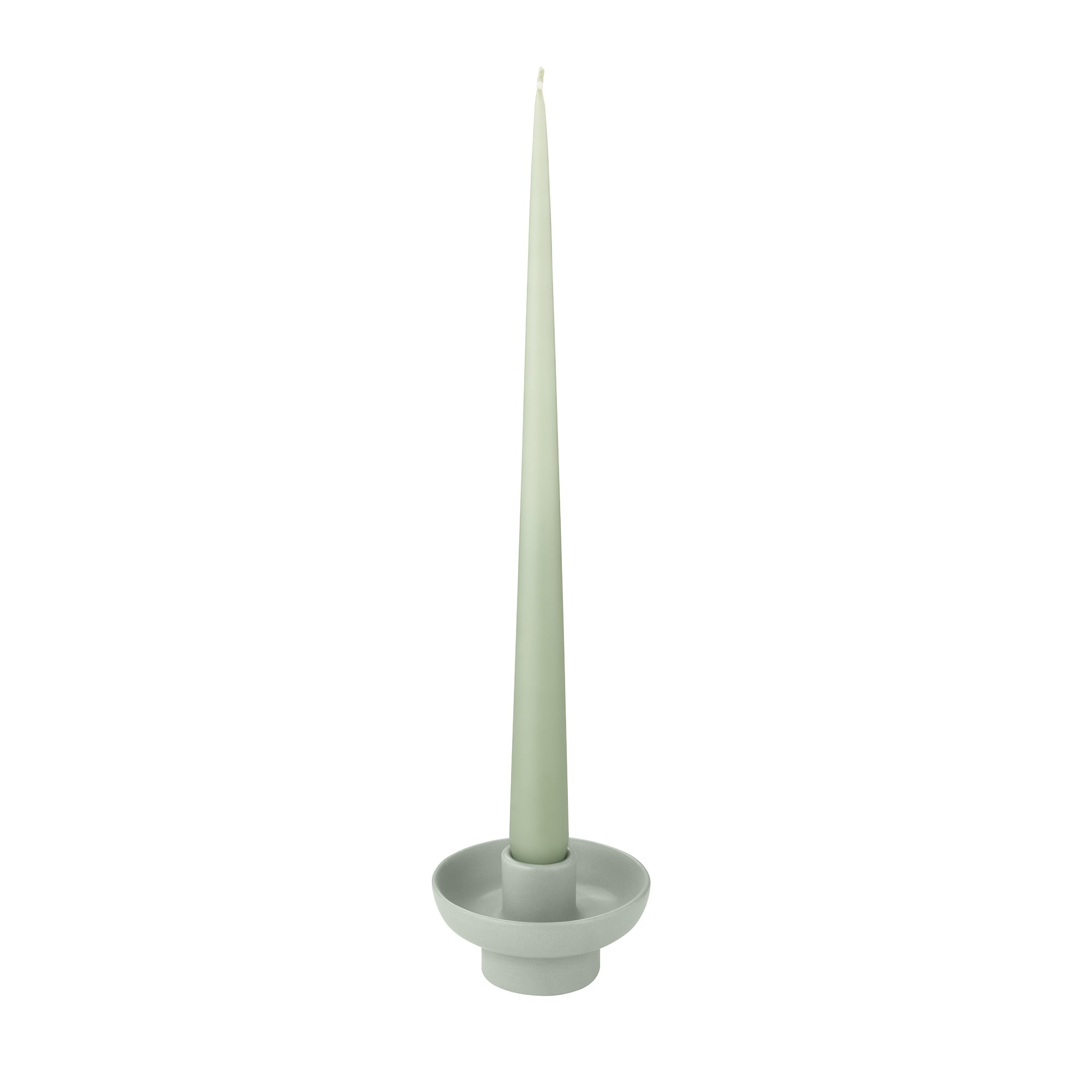 Elegante grüne Spitzkerze in einem minimalistischen Halter, perfekt für die Wohnkultur.