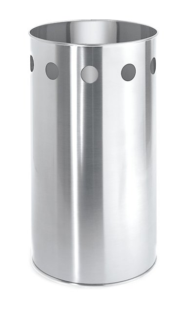 Heller Edelstahl-Mülleimer mit runden Löchern zur Belüftung und einem eleganten Design.