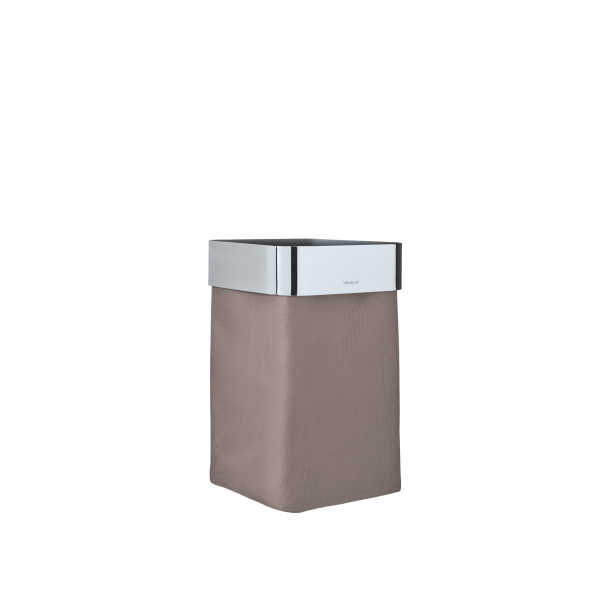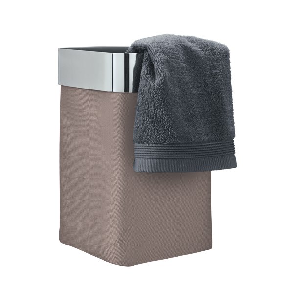 Für die Gäste nur das Beste! Die sicherlich schönste Art, benutzte Gästhandtücher aufzubewahren, der wandmontierte Handtuchkorb NEXIO. Das obere umlaufende Element aus poliertem Edelstahl hält den Taupefarbenen Baumwollkorb, der herausnehm- und waschbar ist. Eine ebenfalls herausnehmbare Metallplatte verstärkt Boden und hält ihn gleichzeitig in Form. Auch in Anthrazit sowie wahlweise in mattierter Ausführung erhältlich. Lieferung inklusive Montagekit. Keine Lust auf Bohren? Ein spezielles Klebeset ist separat unter Nr. 68809 bestellbar.