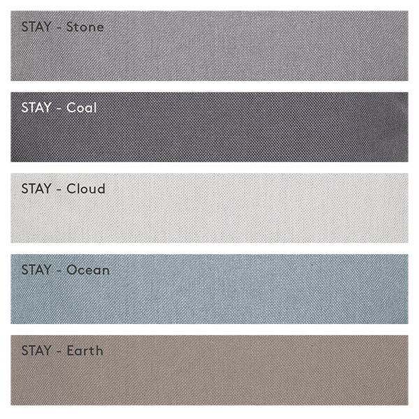 STAY: Our outdoor fabrics are woven from a high quality, weather-resistant polyester yarn which makes them ideal to be used outside. The outside of the fabric has been specially treated to be water repellent and the inside is lined with a flexible TPU-foil, which is elastic and watertight. In addition their polyacrylate coating makes the fabrics extremely durable und UV resistant.