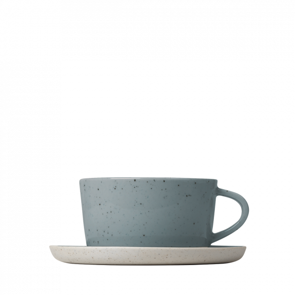 Soft and rough – as if water were flowing over sand. The set of two teacups from the SABLO series is made from a unique blend of colored clay, quartz, minerals, and oxides. The slightly speckled look harmonizes perfectly with the color combination of gray and beige tones and is enhanced by the partially applied glaze. Due to the color variations, each piece is unique with a distinctive handcrafted appearance. Dishwasher and microwave safe.