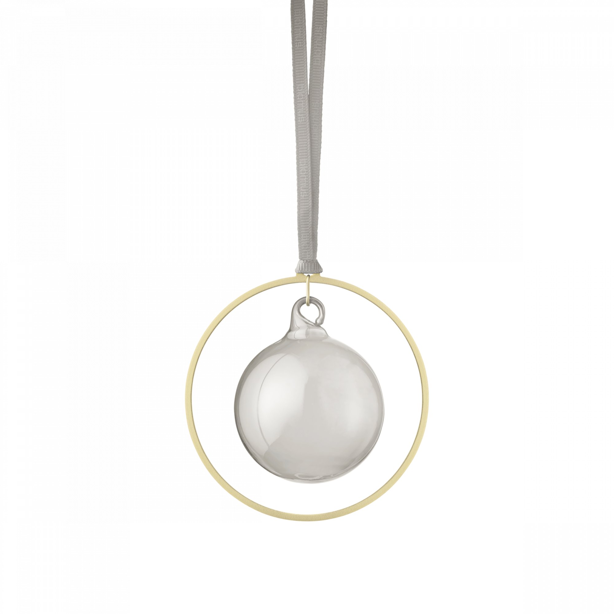A delicate, hand-blown glass ball hangs in a metallic ring. A wonderful, modern interpretation of the classic Christmas bauble. These create a wonderful harmony in different colors and create a Christmassy mood; light or candlelight is reflected and an atmospheric, elegant look is created.