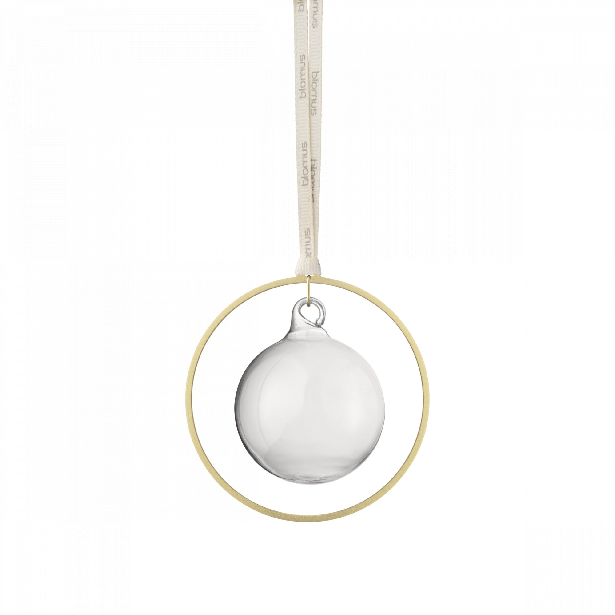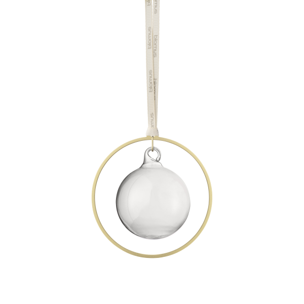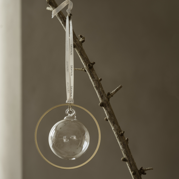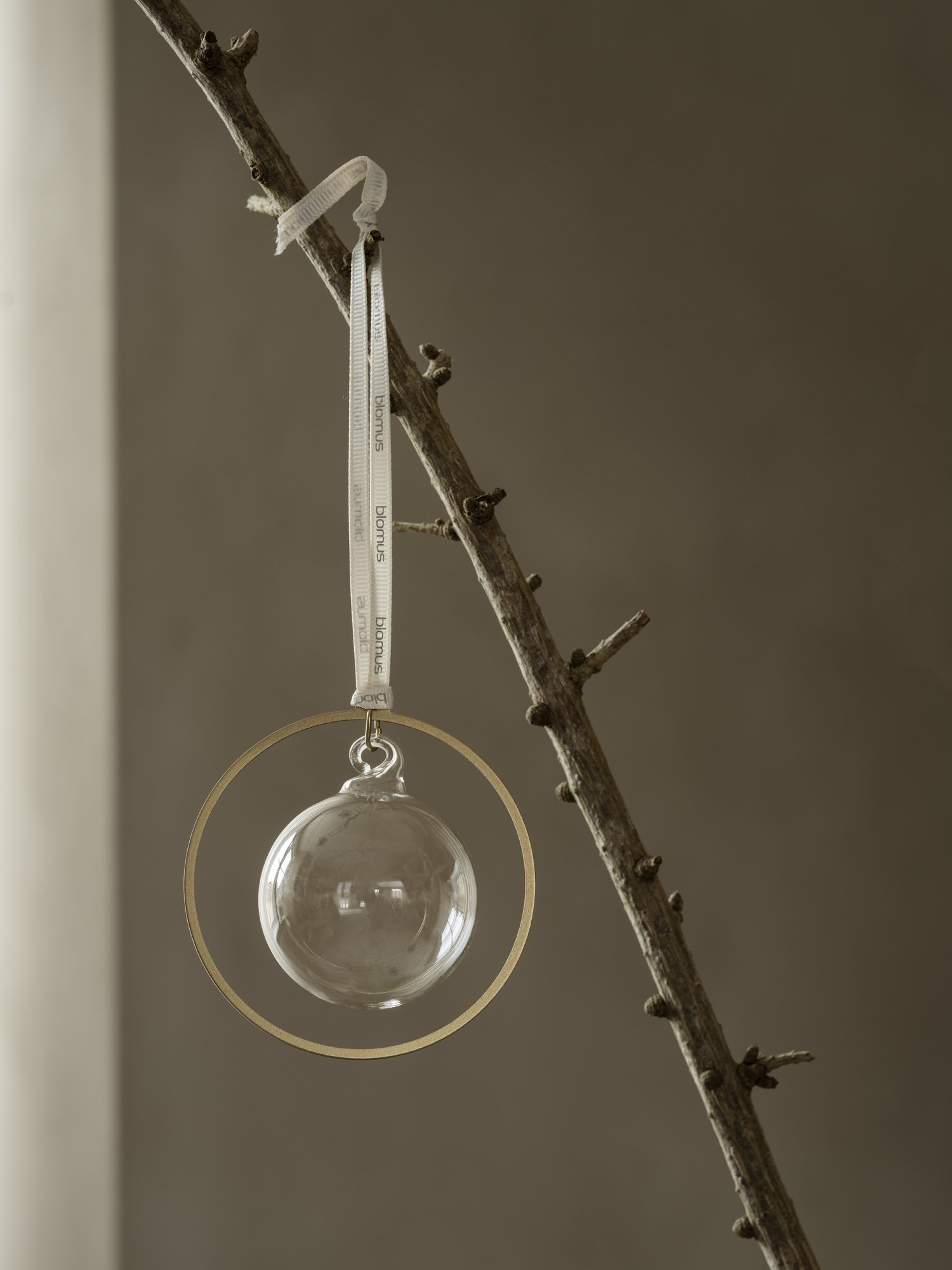 A delicate, hand-blown glass ball hangs in a metallic ring. A wonderful, modern interpretation of the classic Christmas bauble. These create a wonderful harmony in different colors and create a Christmassy mood; light or candlelight is reflected and an atmospheric, elegant look is created.