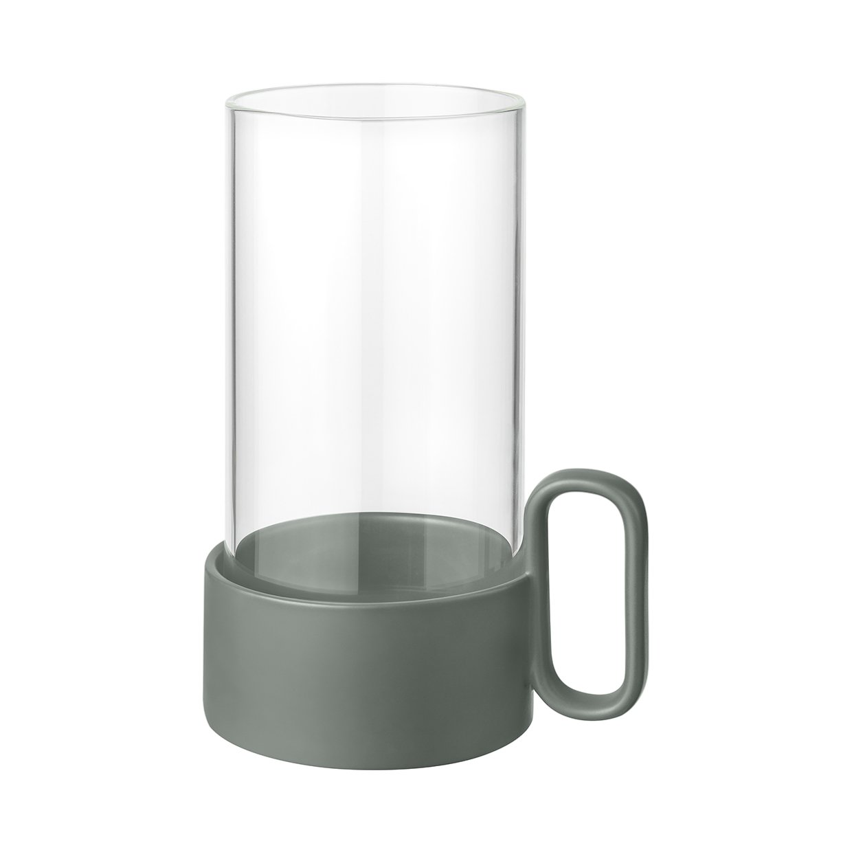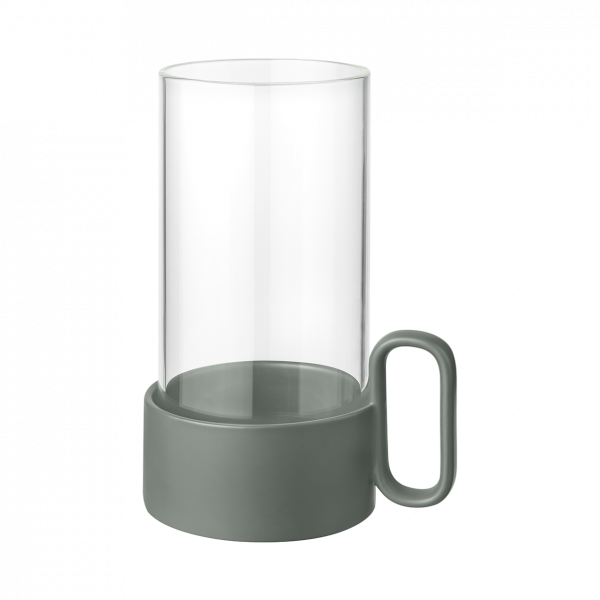 YURAGI, conçu par le designer japonais Kazushige Miyake, est une version moderne de la lampe à ouragan qui est à la fois étonnamment simple et très fonctionnelle. Elle se compose d'une base en céramique portable et d'un cylindre en verre qui protège la bougie enflammée. Grâce à la poignée, la lampe est facile à transporter.