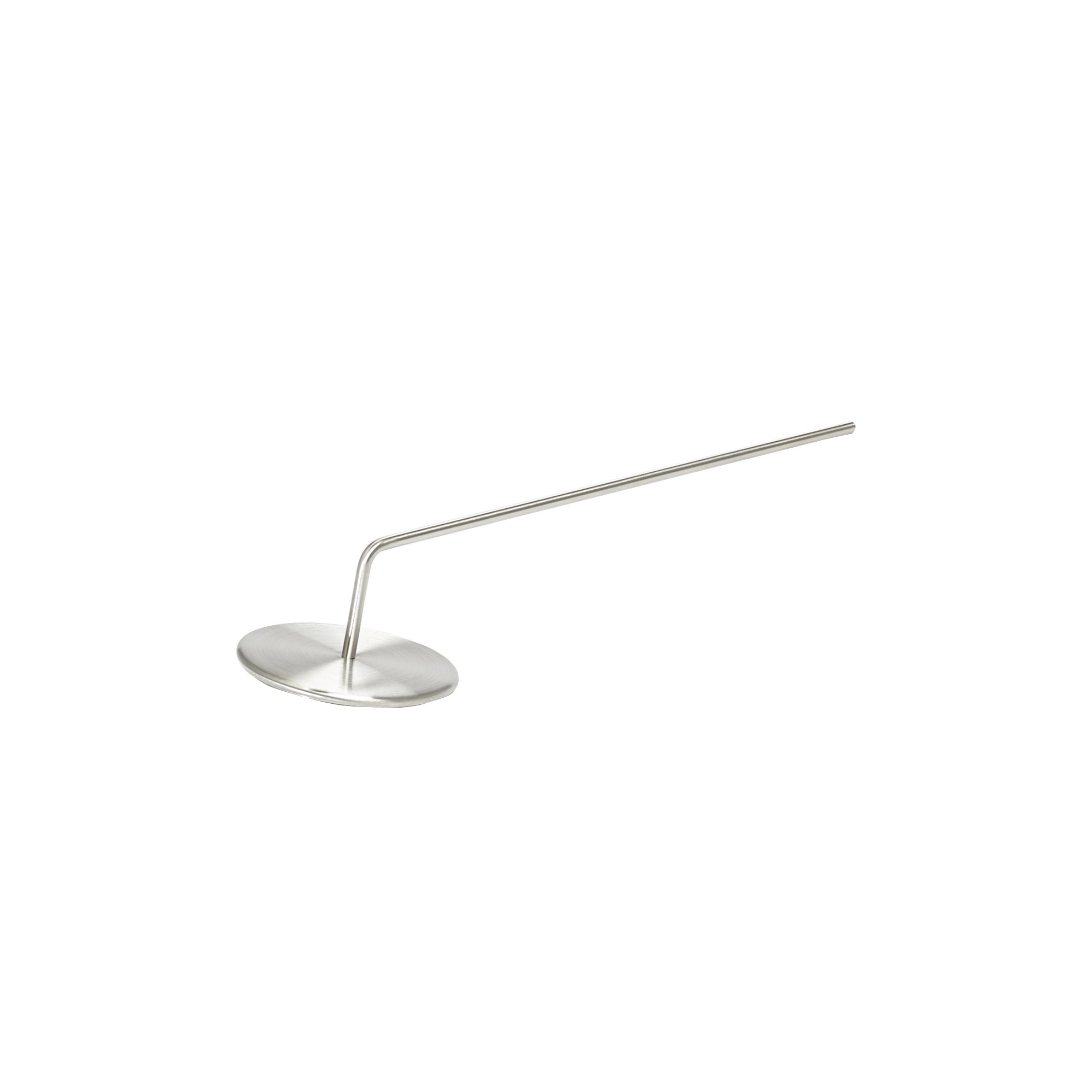 Stainless steel stirrer with a flat disc and long handle for mixing or serving.