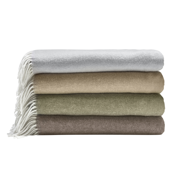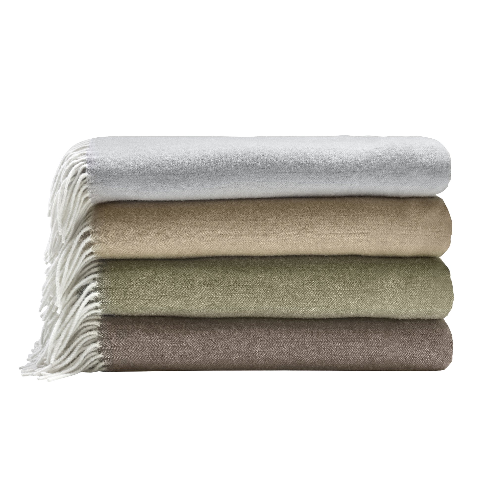 The elegant herringbone pattern with its harmonious two-tone colour scheme, combined with delicate fringing, gives the blanket a timeless charm.